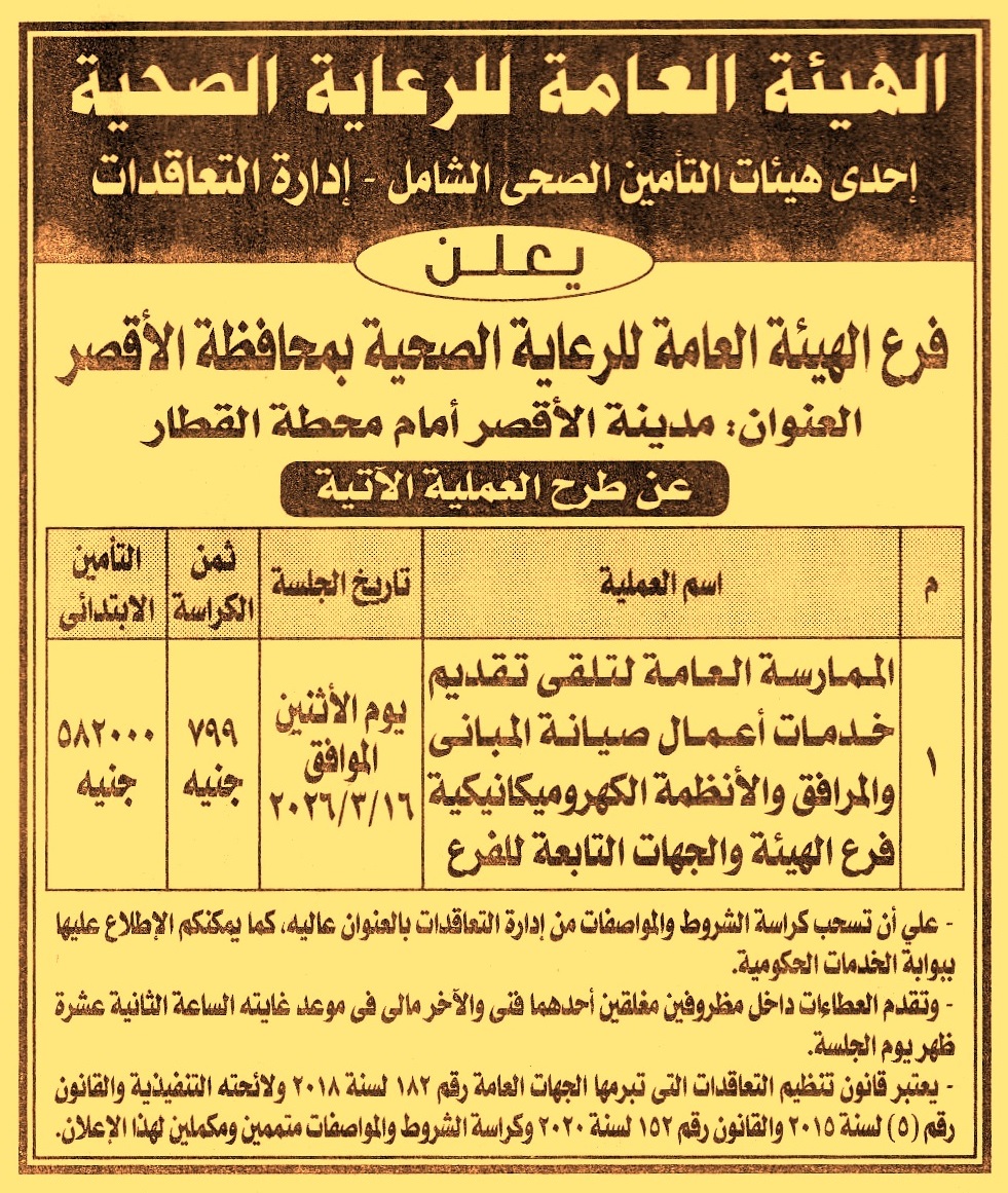 HOT information ممارسة عامة لعملية تقديم خدمات أعمال صيانة المباني والمرافق والأنظمة الكهروميكانيكية لفرع الهيئة والجهات التابعة للفرع عن جريدة الأخبار Post navigation مركز التنمية الشبابية بمدينة بنها شركة الغازات البترولية