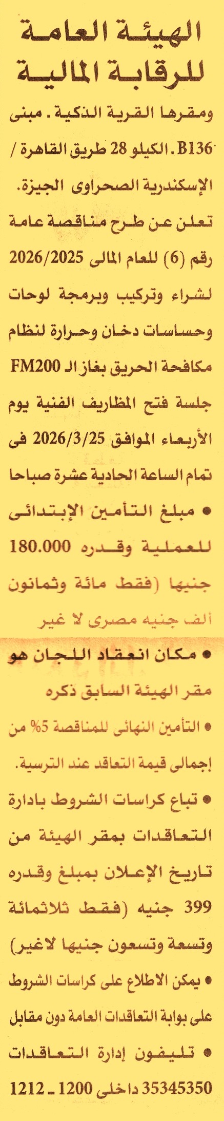 مناقصة عامة رقم 6/2025/2026 لعملية