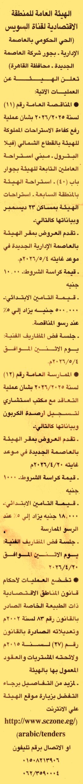 مناقصة عامة رقم 11/2025/2026 لعملية