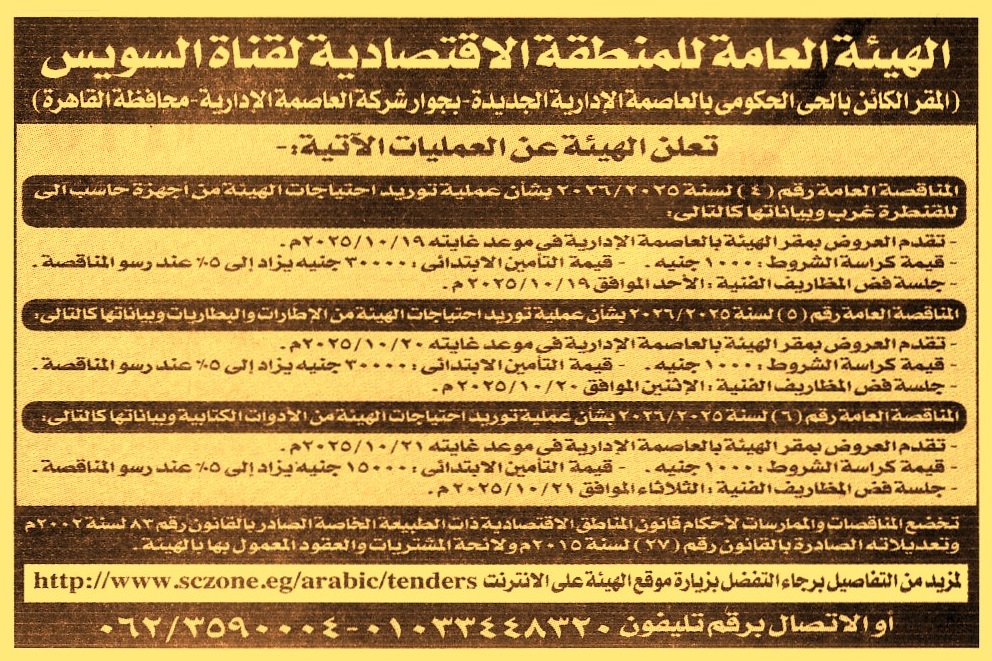 HOT information مناقصة عامة رقم 4/2025/2026 لعملية توريد أجهزة حاسب ألي للقنطرة غرب عن جريدة الجمهورية Post navigation الوحدة المحلية لمركز ومدينة بيلا شركة السويس لتصنيع البترول