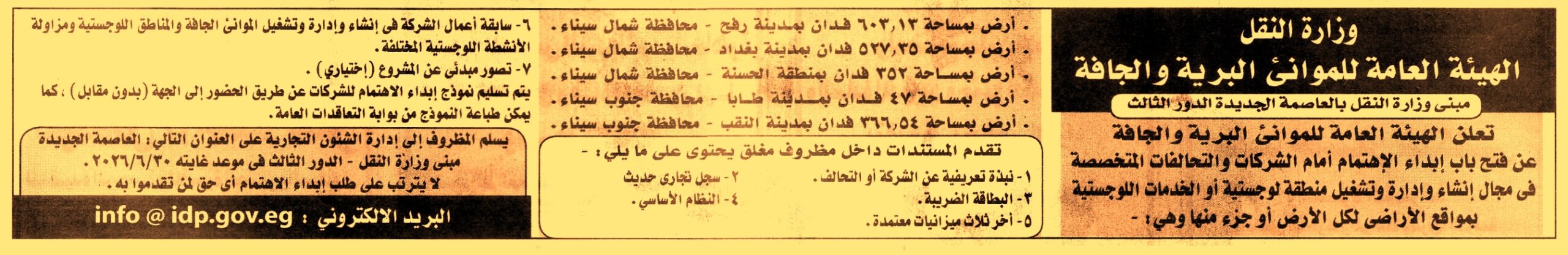 تقدم طلبات الاهتمام في موعد غايته يوم 30/6/2026)