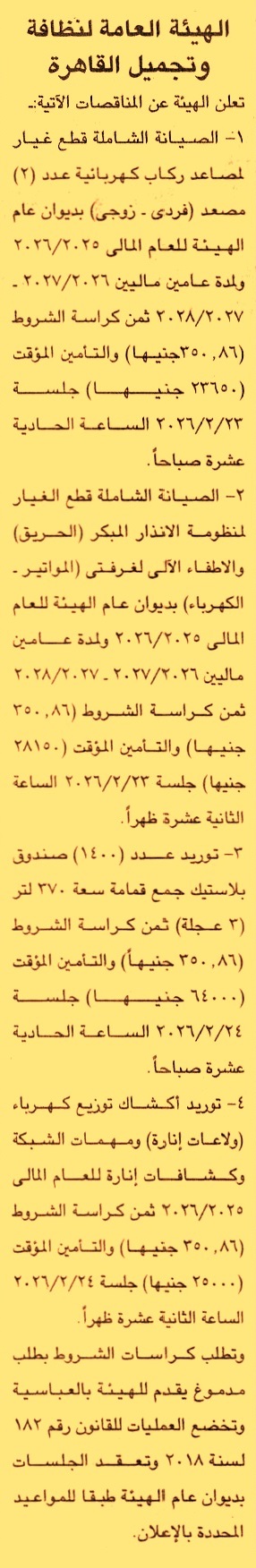 تنفيذ أعمال الصيانة الشاملة قطع الغيار لمصاعد ركاب كهربائية عدد 2 مصعد “فردي, زوجي” بديوان عام الهيئة