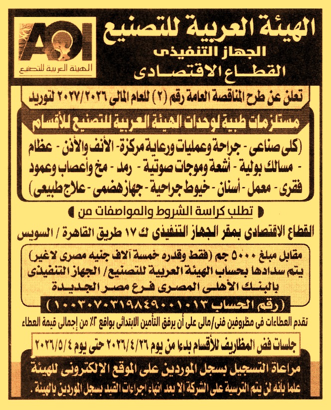 توريد مستلزمات طبية لوحدات الهيئة للتصنيع للأقسام