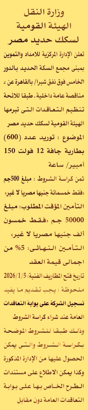 توريد عدد 600 بطارية جافة 12 فولت 150 أمبير/ساعة