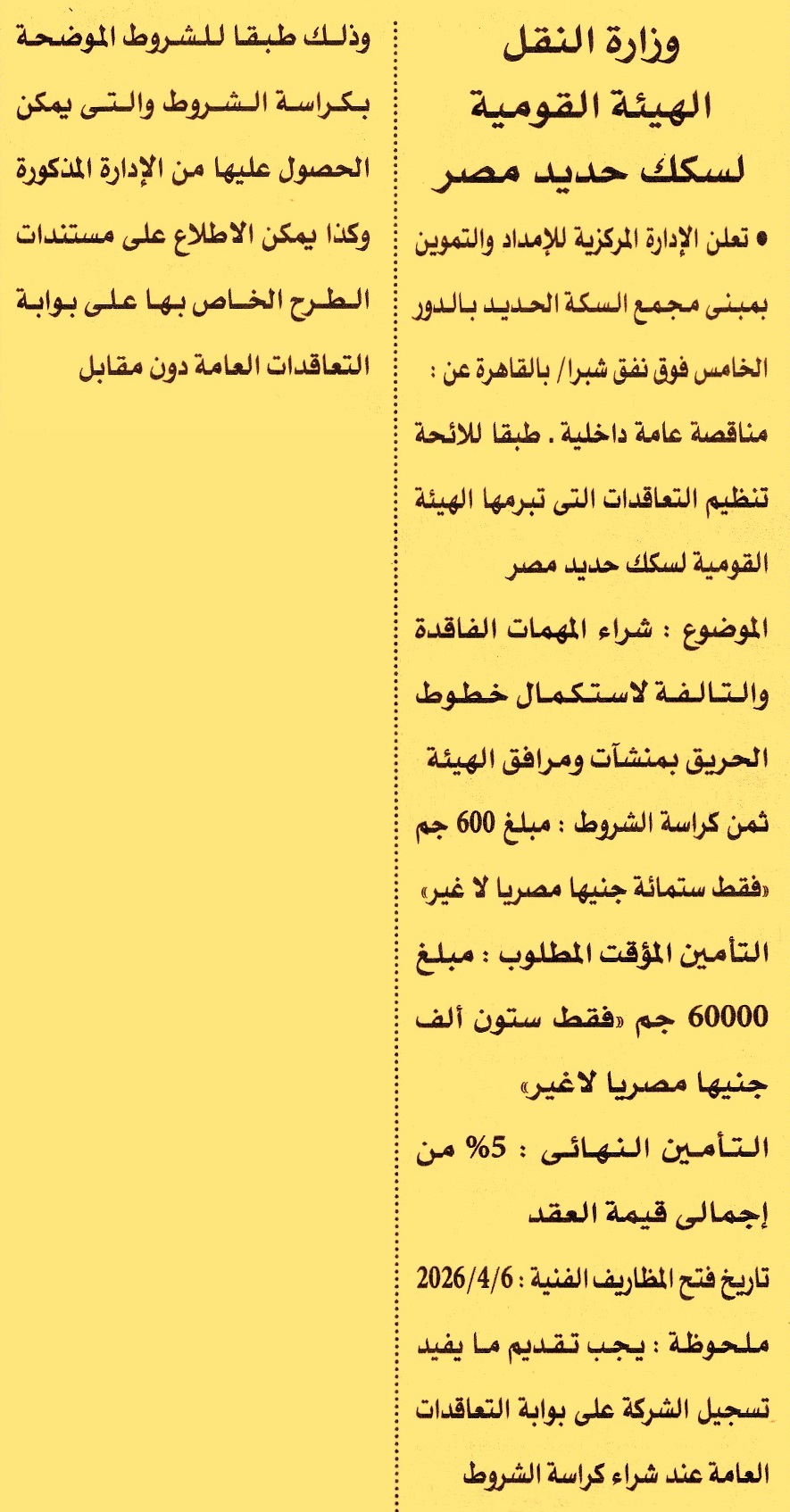 HOT information مناقصة عامة داخلية لعملية توريد المهمات الفاقدة والتالفة لاستكمال خطوط الحريق بمنشأت ومرافق الهيئة عن جريدة الأهرام Post navigation مؤسسة مستشفى أورام الأطفال 57357 الشركة المصرية لإنتاج الأمصال واللقاحات والأدوية