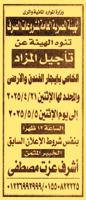 تعلن الهيئة عن تأجيل جلسة المزايدة العلنية لعملية