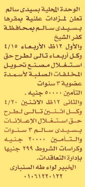 حق استغلال مصنع تحويل المخلفات الصلبة لأسمدة عضوية لمدة 3 سنوات