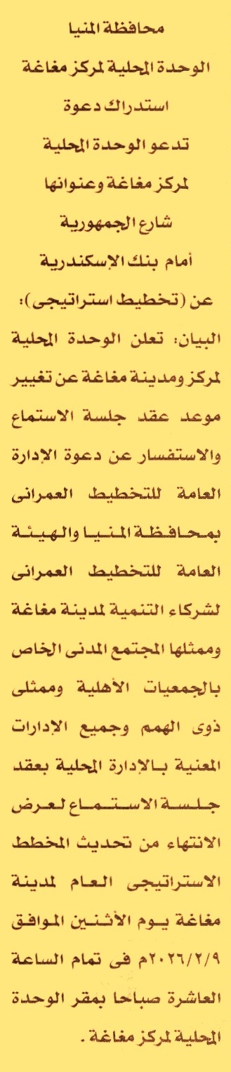 لعرض الانتهاء من تحديث المخطط الاستراتيجي العام لمدينة مغاغة