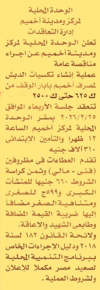إنشاء تكسيات الدبش لمصرف أخميم بابار الوقف من ك 625 حتى ك 2500