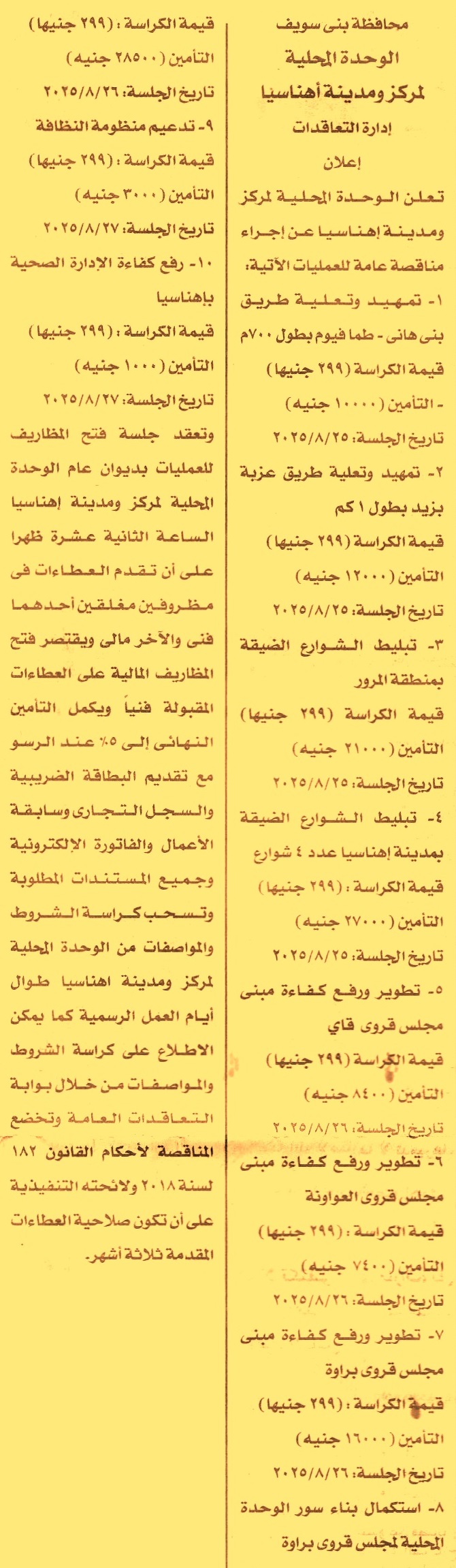 HOT Information مناقصة عامة لعملية تمهيد وتعلية طريق بني هاني – طما فيوم بطول 700م (يرفق مع المستندات سابقة أعمال ومدة سريان العطاءات 3 أشهر) عن جريدة الأخبار Post navigation البنك الاهلي المصري الإدارة العامة لصرف سوهاج