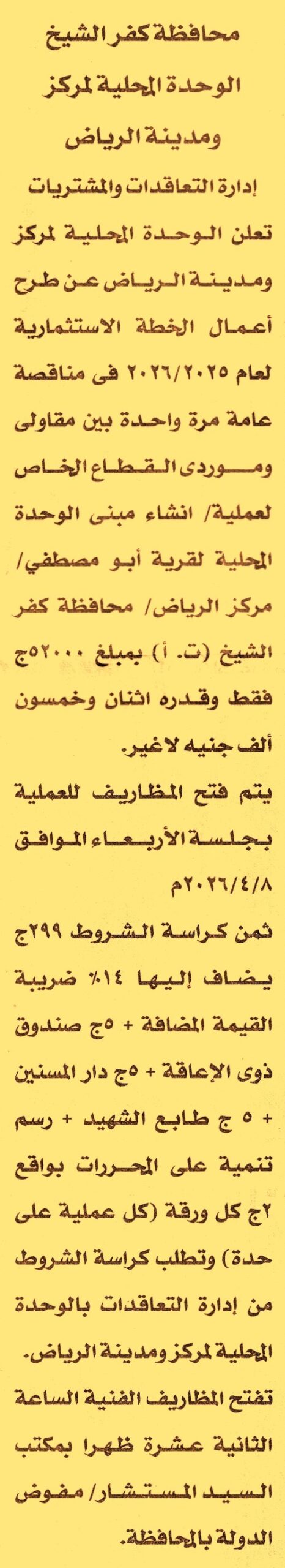 انشاء مبنى الوحدة المحلية لقرية أبو مصطفى, مركز الرياض, محافظة كفر الشيخ