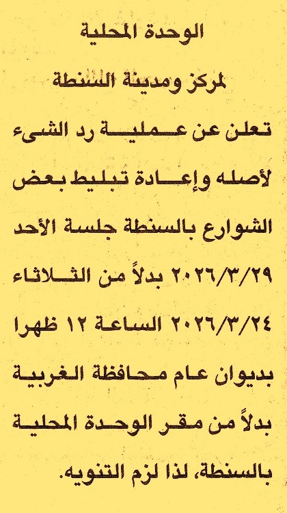 رد الشيء لأصله لأعمال إعادة تبليط بعض الشوارع بمدينة السنطة