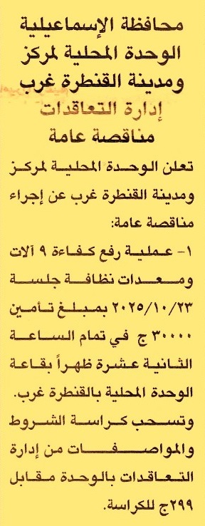HOT information مناقصة عامة لعملية رفع كفاءة 9 ألات ومعدات نظافة عن جريدة الجمهورية Post navigation شركة قنا لصناعة الورق شركة مطاحن شرق الدلتا
