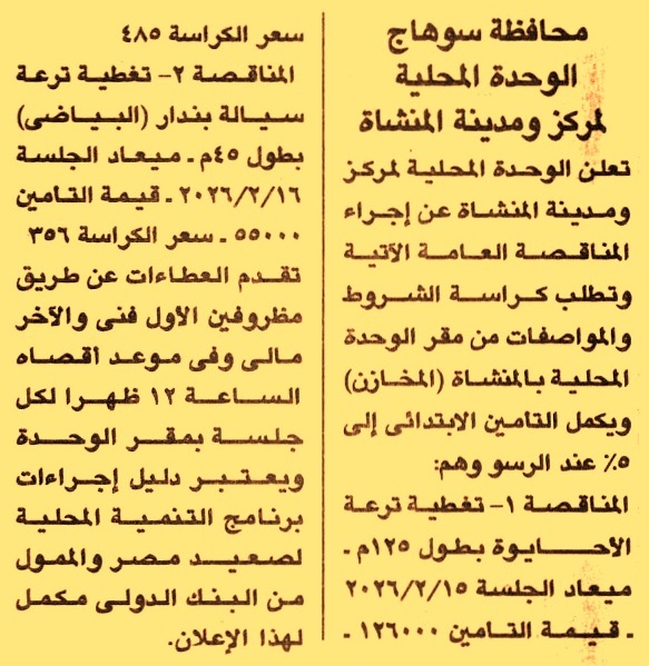 HOT Information مناقصة عامة لعملية تغطية ترعة الأحايوة بطول 125م عن جريدة الجمهورية Post navigation الجمعية التعاونية المركزية بدمياط مدينة البعوث الإسلامية