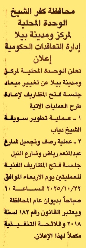 تعلن الوحدة عن تعديل موعد فتح المظاريف