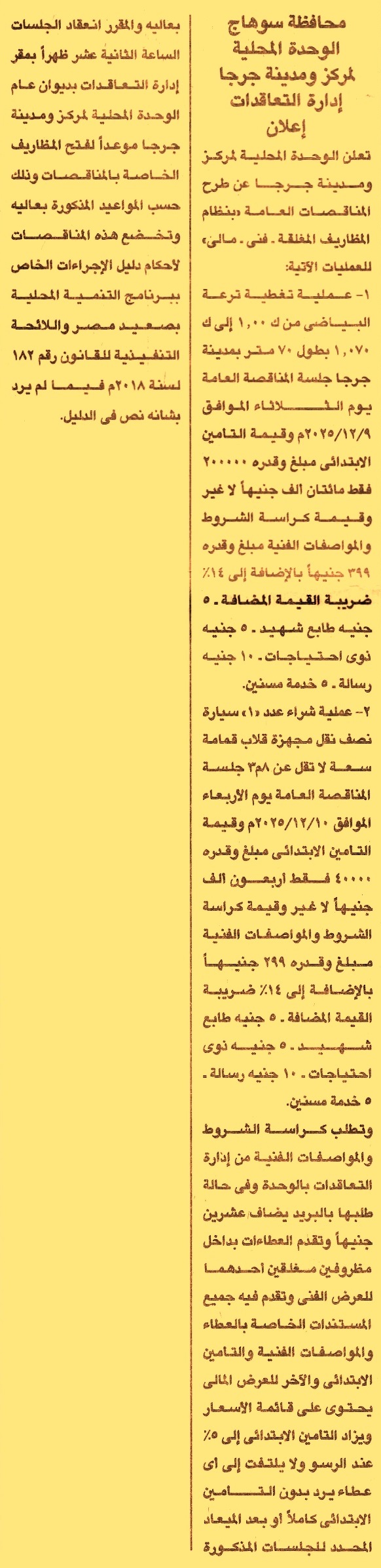 HOT Information مناقصة عامة لعملية تغطية ترعة البياضي من ك 1.00 إلى ك 1.070 بطول 70م بمدينة جرجا عن جريدة الجمهورية Post navigation مستشفيات جامعة القاهرة نادي بدر الرياضي بالبحيرة