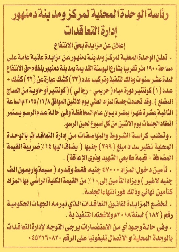 لتنفيذ وتركيب عدد 33 كشك “عبارة عن 32 كشك وعدد 1 كونتينر دورة مياه حريمي – رجالي”
