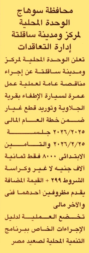 HOT information مناقصة عامة لعملية عمل عمرة لسيارة الإطفاء بقرية الجلاوية وتوريد قطع غيار عن جريدة الجمهورية Post navigation جمعية أمون التعاونية الزراعية بالإسماعيلية نقابة المهن الزراعية بالإسماعيلية