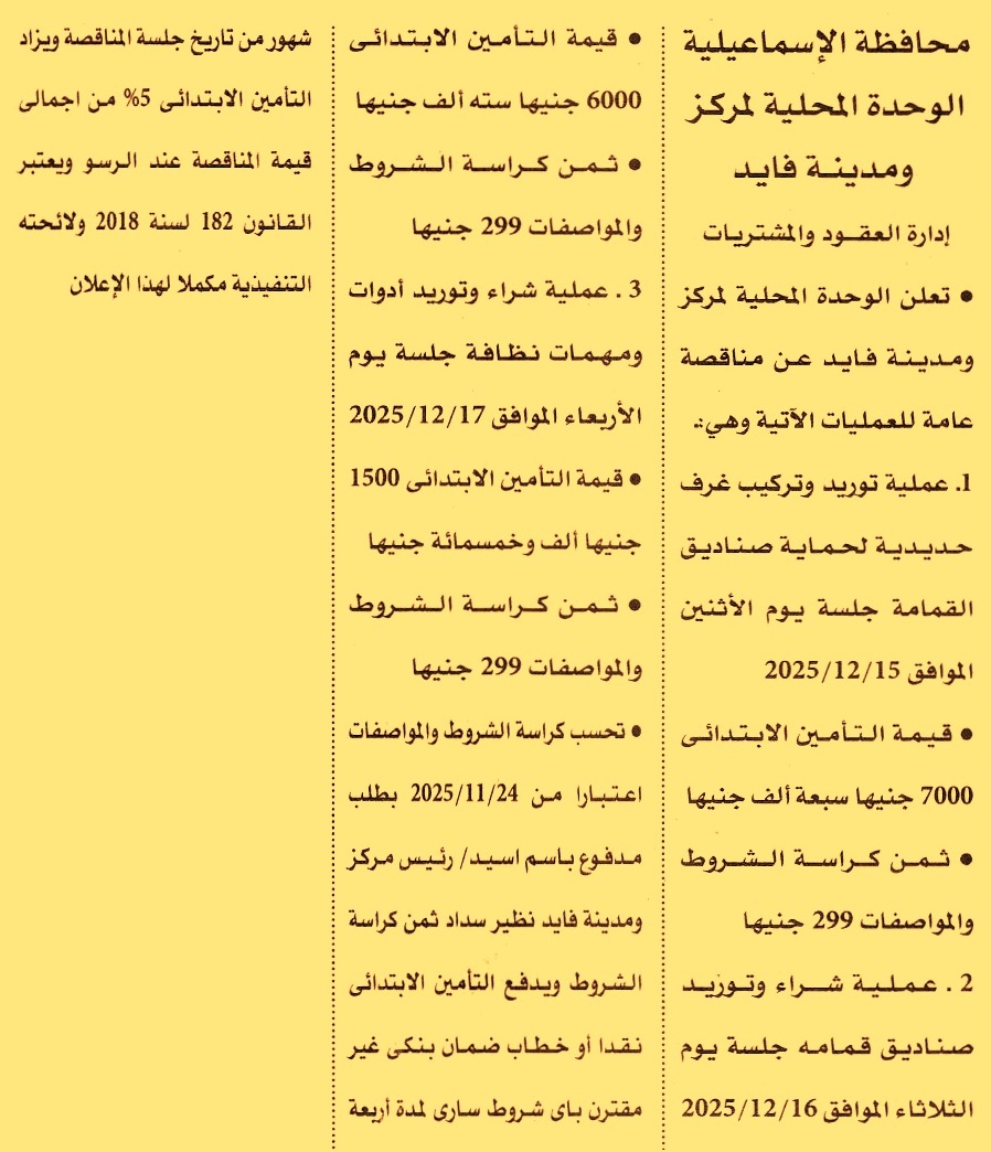 HOT Information مناقصة عامة لعملية توريد وتركيب غرف حديدية لحماية صناديق القمامة (مدة سريان خطاب الضمان 4 أشهر) عن جريدة الأهرام Post navigation جامعة المنصورة الهيئة القومية لمياه الشرب والصرف الصحي