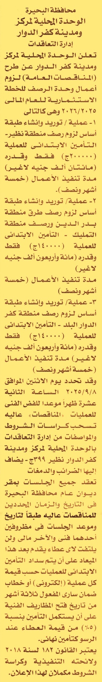 HOT Information مناقصة عامة لعملية توريد ,إنشاء طبقة أساس لزوم رصف منطقة نظير مدة العملية 5 أشهر ونصف (مدة سريان خطاب الضمان 3 أشهر) عن جريدة الأخبار Post navigation رئاسة مركز ومدينة أبو حماد شركة الحبشي للخبرة والتثمين