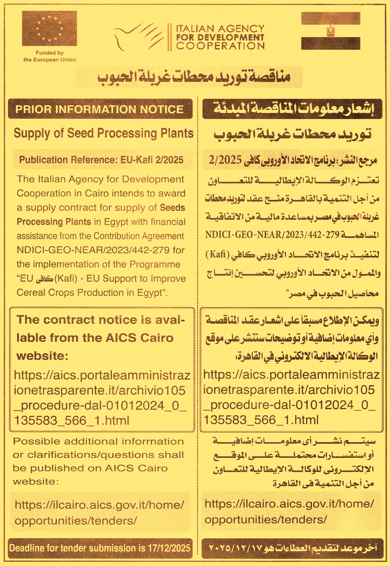 (أخر موعد لتقديم العطاءات يوم 17/12/2025)