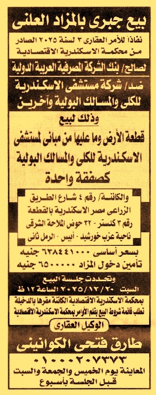 لمستشفى الإسكندرية للكلى والمسالك البولية “كصفقة واحدة”