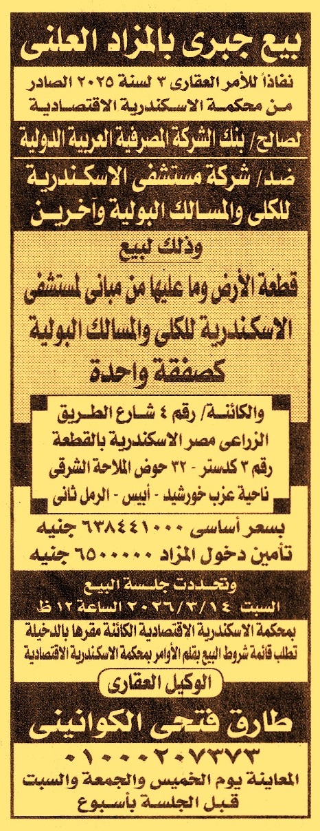 لمستشفى الإسكندرية للكلى والمسالك البولية “كصفقة واحدة”