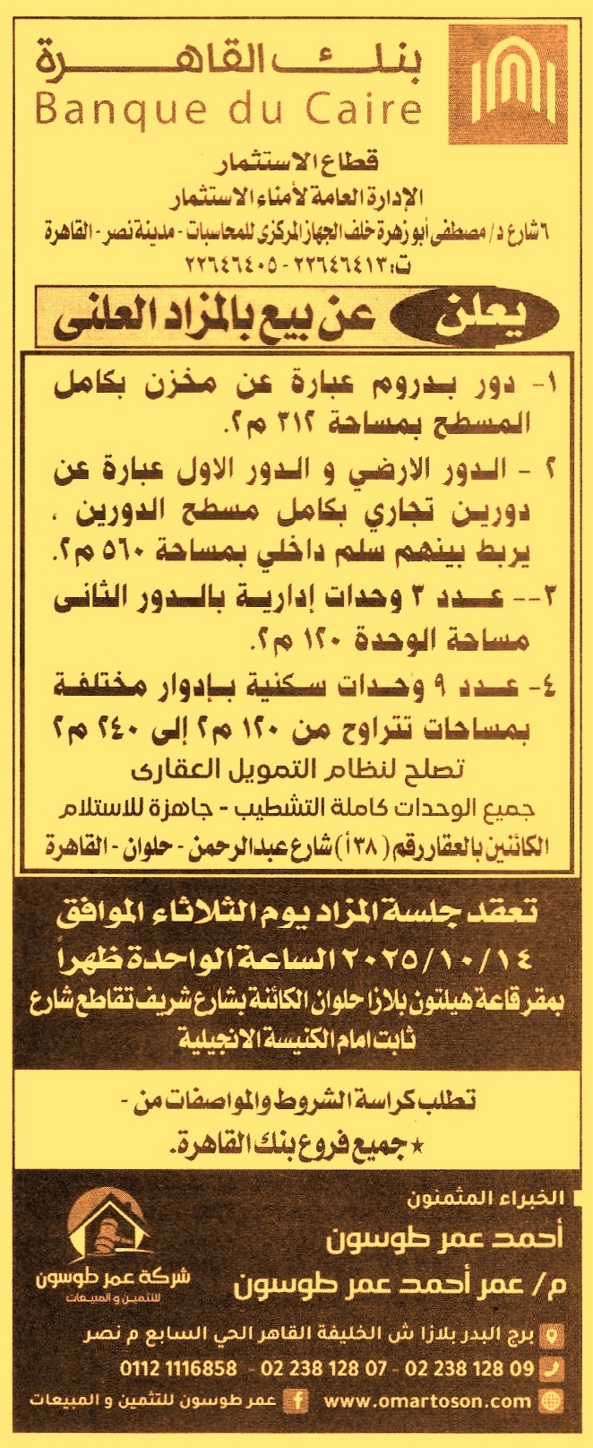 الكائنتين بالعقار رقم 38أ شارع عبد الرحمن – حلوان – القاهرة