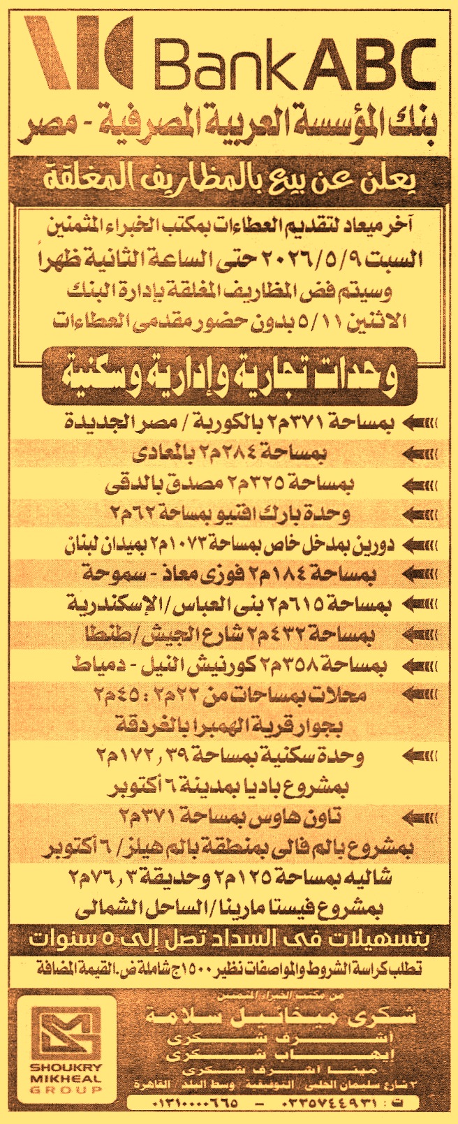 (أخر موعد لتقديم العطاءات يوم 9/5/2026 حتى الساعة 2 ظ
