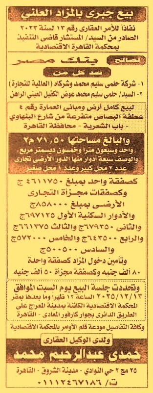 كصفقة واحدة بثمن أساسي 4.611.750ج