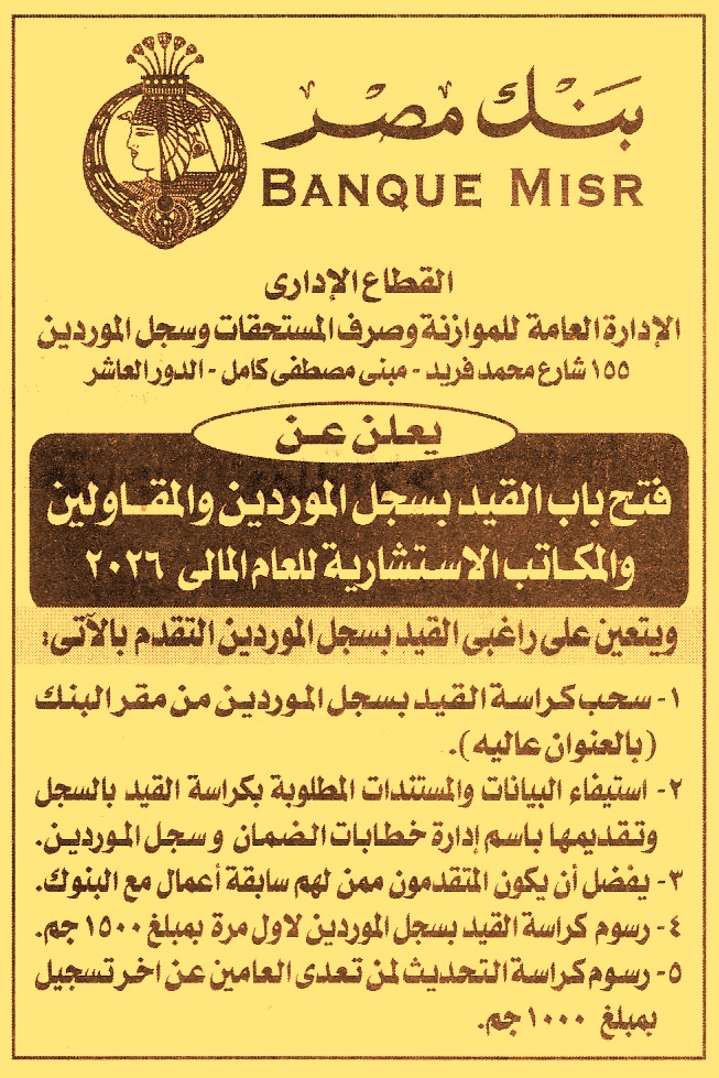 HOT Information فتح باب القيد بسجل الموردين والمقاولين والمكاتب الاستشارية للعام المالي 2026 عن جريدة الأهرام Post navigation شركة المقاولون العرب