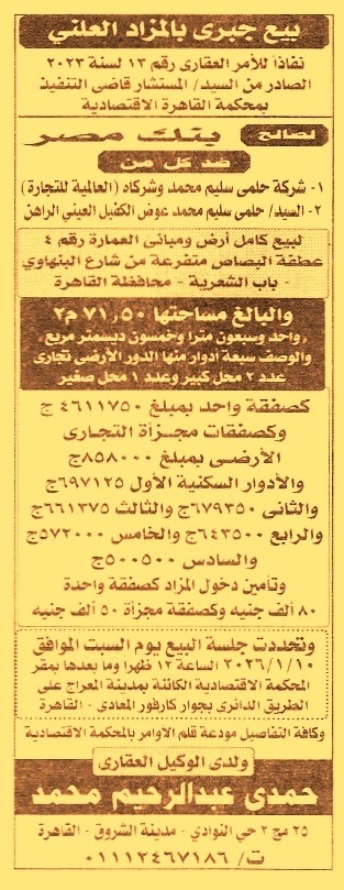 كصفقة واحدة بثمن أساسي 4.611.750ج
