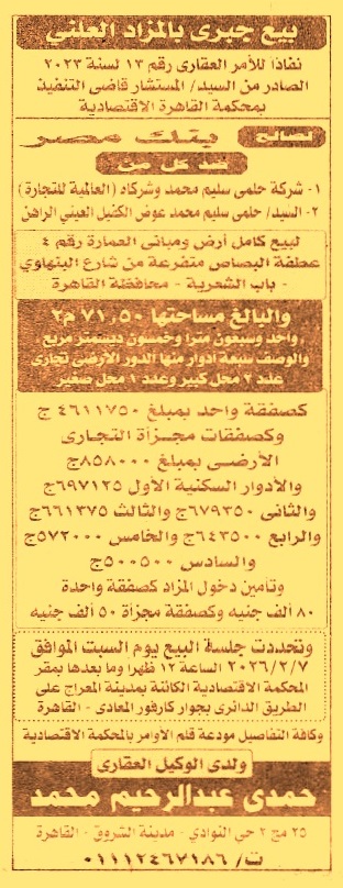 كصفقة واحدة بثمن أساسي 4.611.750ج