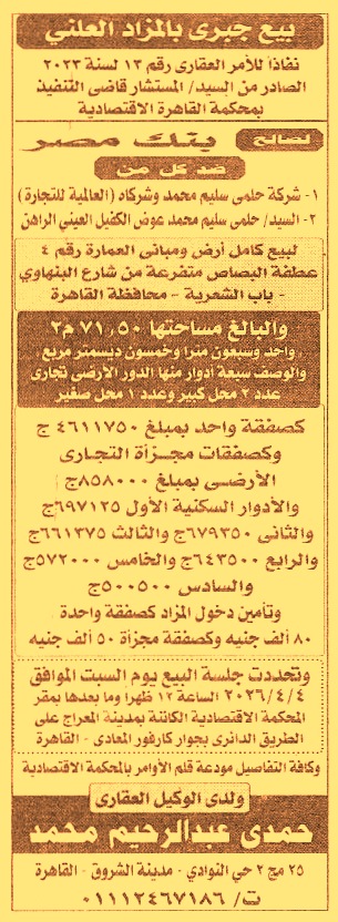 كصفقة واحدة بثمن أساسي 4.611.750ج