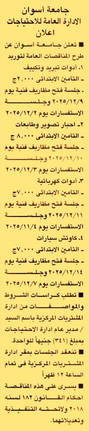 HOT Information مناقصة عامة لعملية توريد أدوات تبريد وتكييف (جلسة الاستفسارات يوم 2/12/2025) عن جريدة الجمهورية Post navigation مستشفى الأطفال بجامعة أسيوط جامعة طنطا
