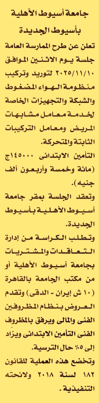 HOT Information ممارسة عامة لعملية توريد وتركيب منظومة الهواء المضغوط والشبكة والتجهيزات الخاصة لخدمة معامل مشابهات المريض ومعامل التركيبات الثابتة والمتحركة عن جريدة الأخبار Post navigation الشركة المصرية للصيانة وخدمات السكك الحديدية الجمعية المشتركة للإصلاح الزراعي منطقة كفر الشيخ