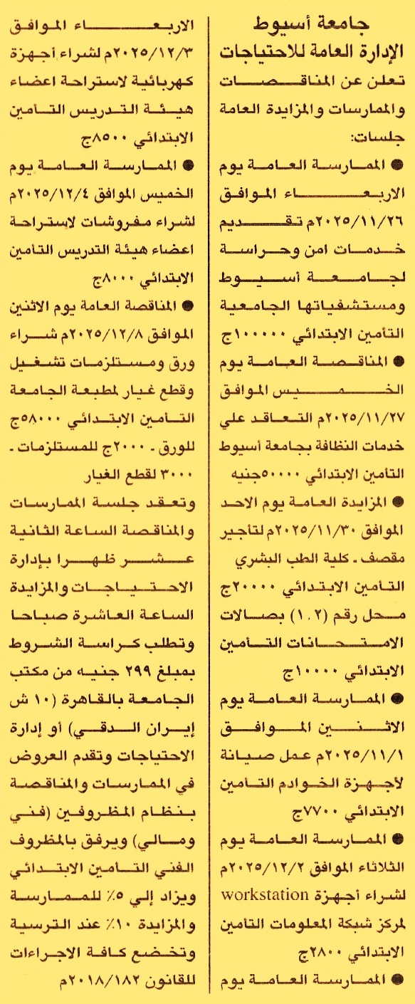 HOT Information ممارسة عامة لعملية تقديم خدمات أمن وحراسة لجامعة أسيوط ومستشفياتها الجامعية عن جريدة الجمهورية Post navigation جامعة عين شمس شركة مطاحن جنوب القاهرة والجيزة