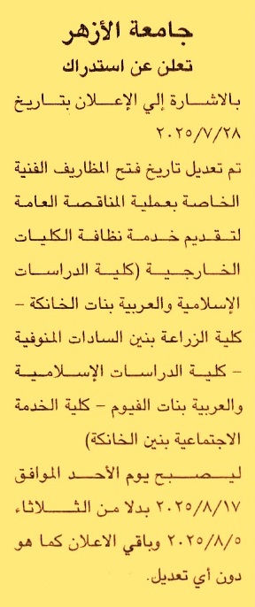 تعلن الجامعة عن تأجيل جلسة فتح المظاريف الفنية