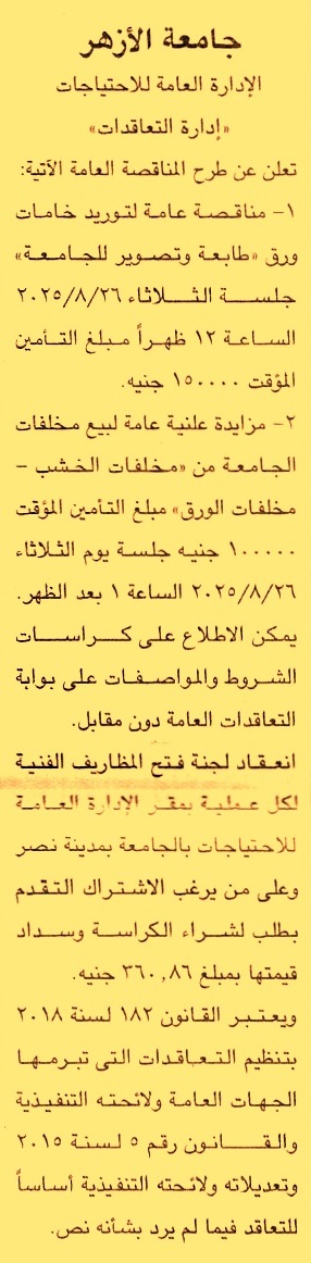 توريد خامات ورق “طابعة وتصوير للجامعة”