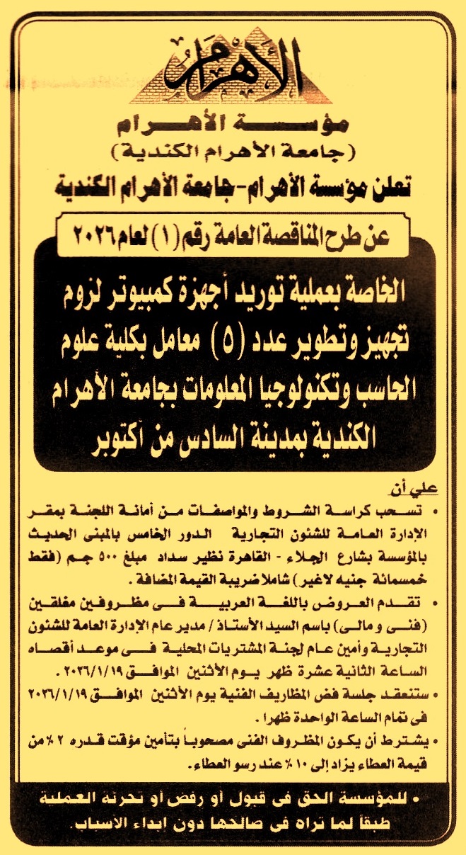 مناقصة عامة رقم 1/2026 لعملية