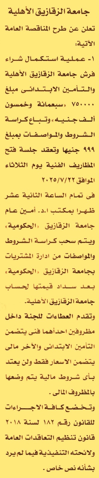 مناقصة عامة لعملية