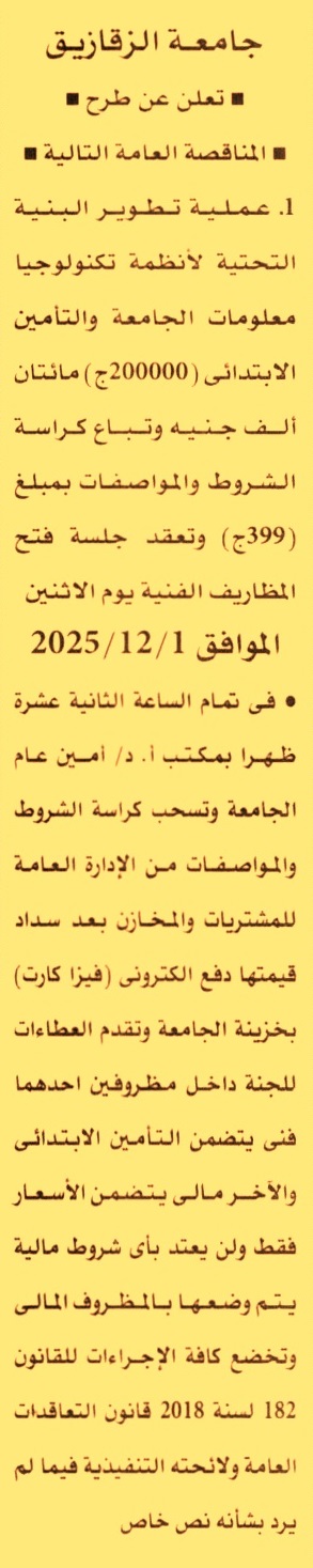 HOT information مناقصة عامة لعملية تطوير البنية التحتية لأنظمة تكنولوجيا معلومات الجامعة عن جريدة الأهرام Post navigation جمعية الهلال الأحمر الفلسطيني شركة مصر العامرية للغزل والنسيج
