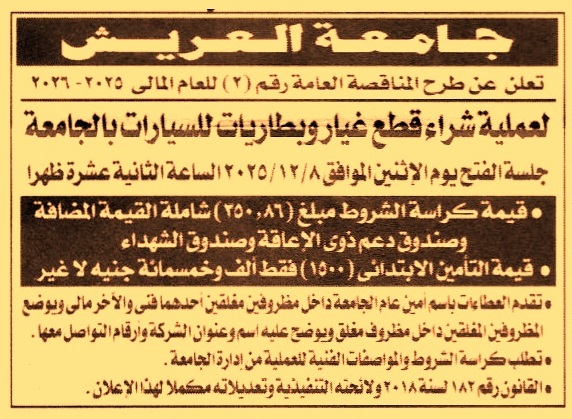 توريد قطع غيار وبطاريات للسيارات بالجامعة