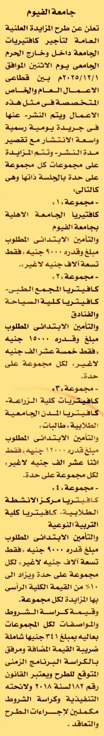 (1) مجموعة 1: كافتيريا الجامعة الأهلية بجامعة الفيوم