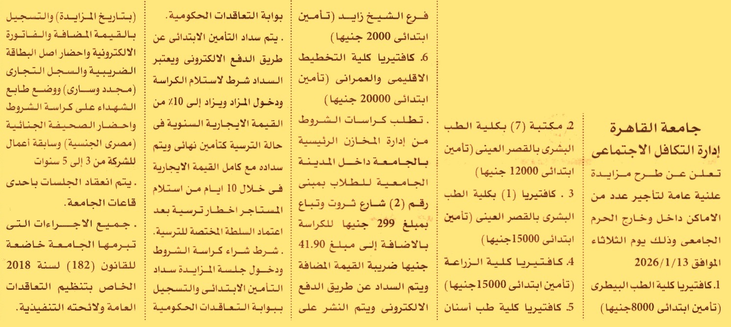 تأجير عدد من الأماكن داخل وخارج الحرم الجامعي