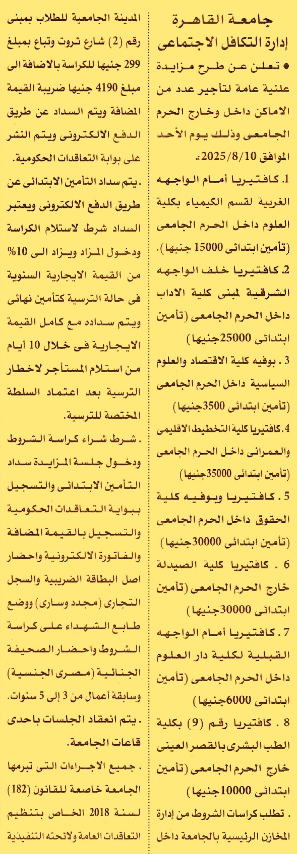 تأجير عدد من الأماكن داخل وخارج الحرم الجامعي