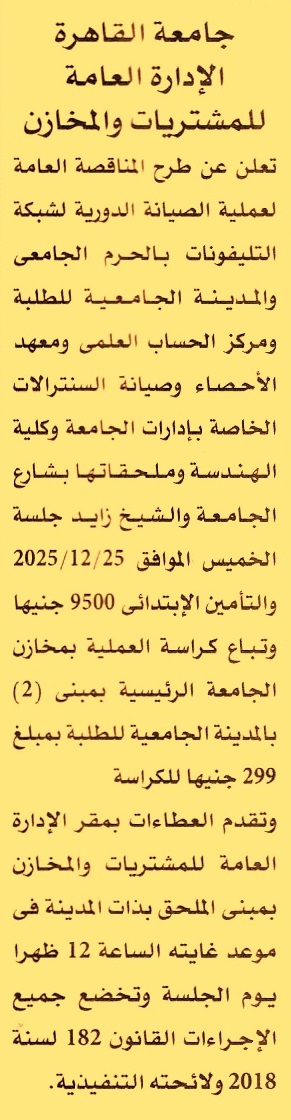 تنفيذ أعمال الصيانة الدورية لشبكة التليفونات بالحرم الجامعي والمدينة الجامعية للطلبة