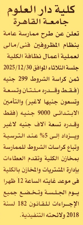 HOT Information ممارسة عامة لعملية تنفيذ أعمال النظافة للكلية عن جريدة الأهرام Post navigation المعهد القومي للأورام الجمعية التعاونية العامة للإصلاح الزراعي