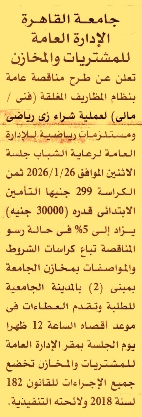 توريد زي رياضي ومستلزمات رياضية للإدارة العامة لرعاية الشباب