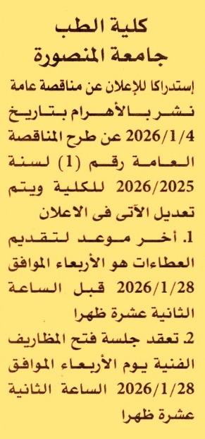 يتم تعديل جلسة فتح المظاريف لتصبح يوم 28/1/2026